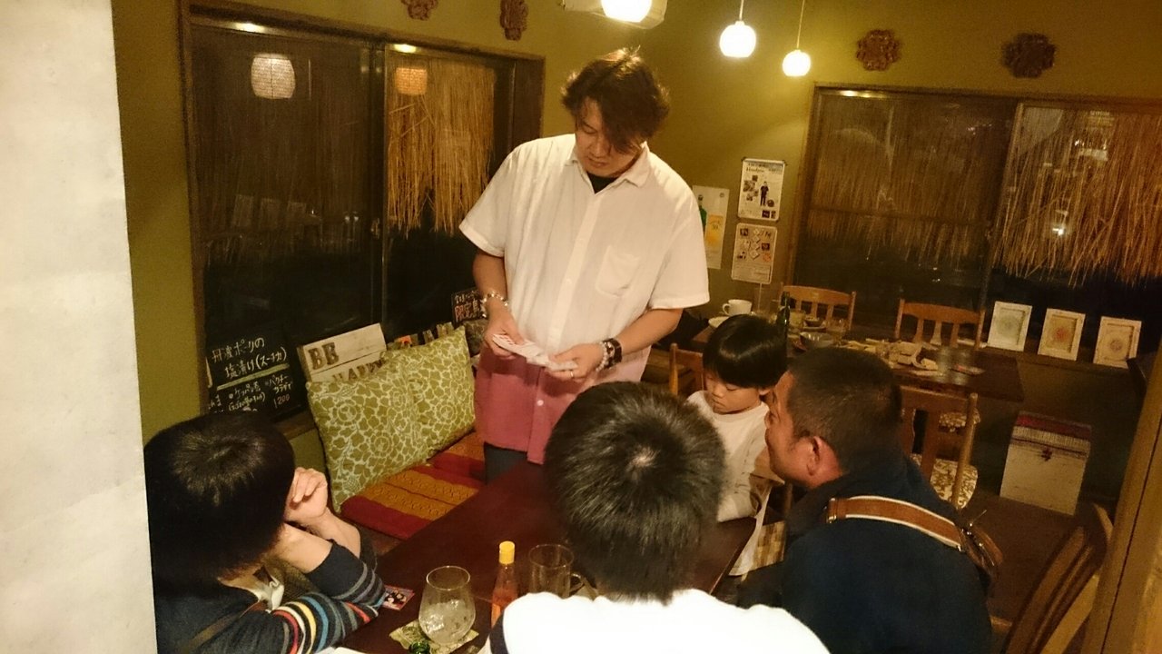タッキーの学生時代の先輩かつ同級生かつ後輩の朱山さんのお店「あけるま」さんでマジックショーをやらせていただきました!