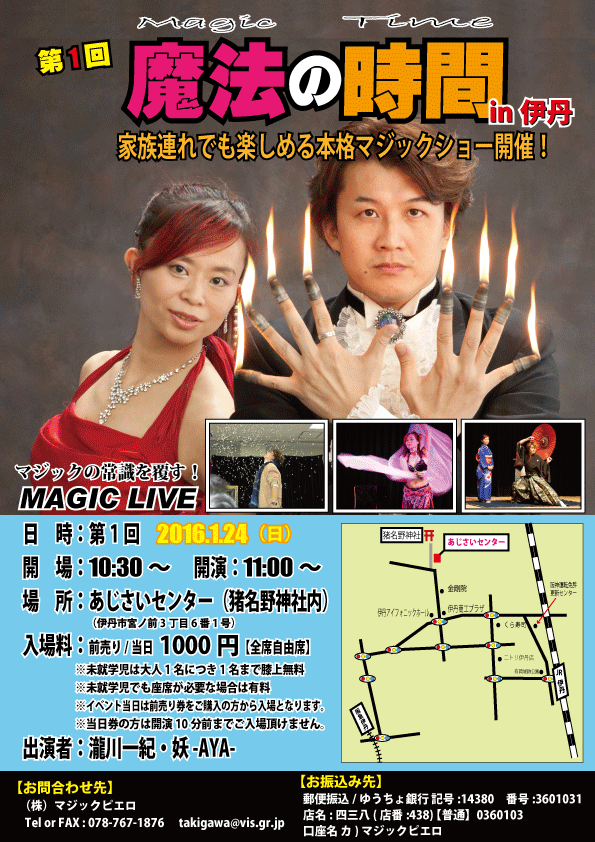 ヨン様マジックや、和妻ファイヤーシンブルや、ベリーダンスゾンビボールなどタッキーと妖-AYA-の魅力を一気に堪能出来るのは「魔法の時間」だけです。